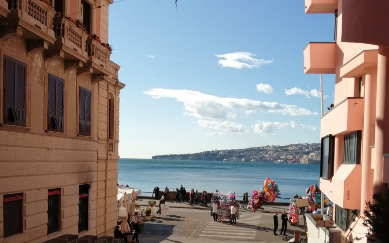 Usciamo dalla Galleria e dopo poco raggiungiamo Via Santa Lucia, c’è un bel sole caldo ad aspettarci e in attesa del nostro taxi guardiamo il mare.